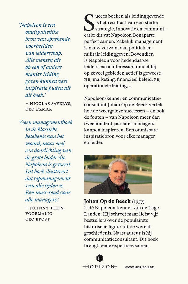 Napoleon-kenner en communicatieconsultant Johan Op de Beeck vertelt hoe de weergaloze successen - en ook de fouten - van Napoleon meer dan tweehonderd jaar later managers kunnen inspireren.