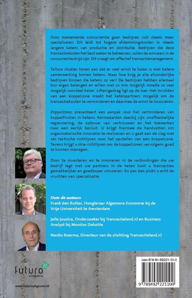 'Koppelzones' presenteert een aanpak voor het verminderen van koppelfricties in ketens. Kernwaarden daarbij zijn: onafhankelijke regievoering, de opbouw van vertrouwen en het toewerken naar een eerlijk besluit. U krijgt hiermee de handvatten om organisatorische innovatie te realiseren en u gaat aan de slag met zes tactische richtlijnen voor het opstellen van een koppelzone. Tevens krijgt u drie richtlijnen om de koppelzones vervolgens goed te kunnen managen.