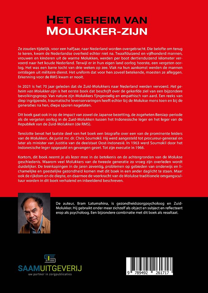 In 2021 is het alweer 70 jaar geleden dat de Zuid-Molukkers naar Nederland werden vervoerd. ‘Het geheim van het Molukker zijn’ is het eerste boek geschreven over de gekerfde ziel van een bijzondere bevolkingsgroep. Van nature zijn Molukkers fijngevoelig en empathisch van aard. Een reeks van diepingrijpende, traumatische levenservaringen heeft echter bij de Molukse mens toen en bij de generaties na hen, diepe sporen nagelaten.