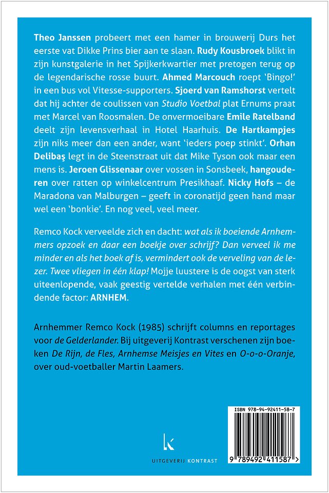 Remco Kock verveelde zich en dacht: wat als ik boeiende Arnhemmers opzoek en daar een boekje over schrijf? Dan verveel ik me minder en als het boek af is, vermindert ook de verveling van de lezer. Twee vliegen in één klap!