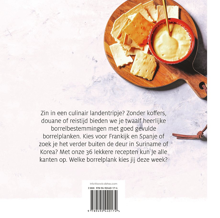 Het kookboek heeft eenvoudig te bereiden recepten en gouden tips om je borrelavond onvergetelijk te maken. Kies voor Frankrijk of Spanje, of zoek het verder buiten de deur in Suriname of Korea. Met de 36 lekkere recepten kun je alle kanten op. Welke borrelplank kies jij deze week?