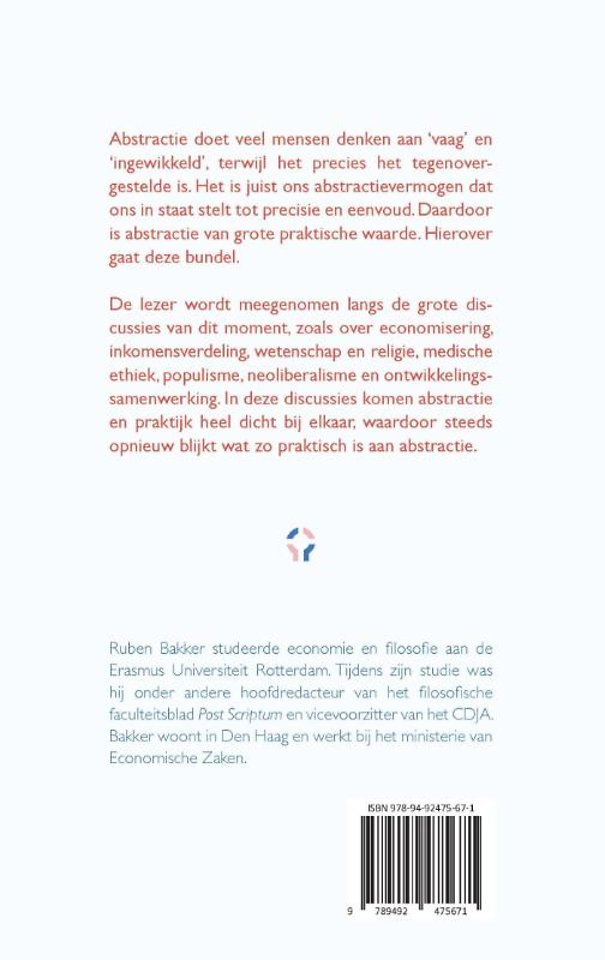 De lezer wordt meegenomen langs de grote discussies van dit moment, zoals over economisering, inkomensverdeling, wetenschap en religie, medische ethiek, populisme, neoliberalisme en ontwikkelingssamenwerking. In deze discussies komen abstractie en praktijk heel dicht bij elkaar, waardoor steeds opnieuw blijkt wat zo praktisch is aan abstractie.