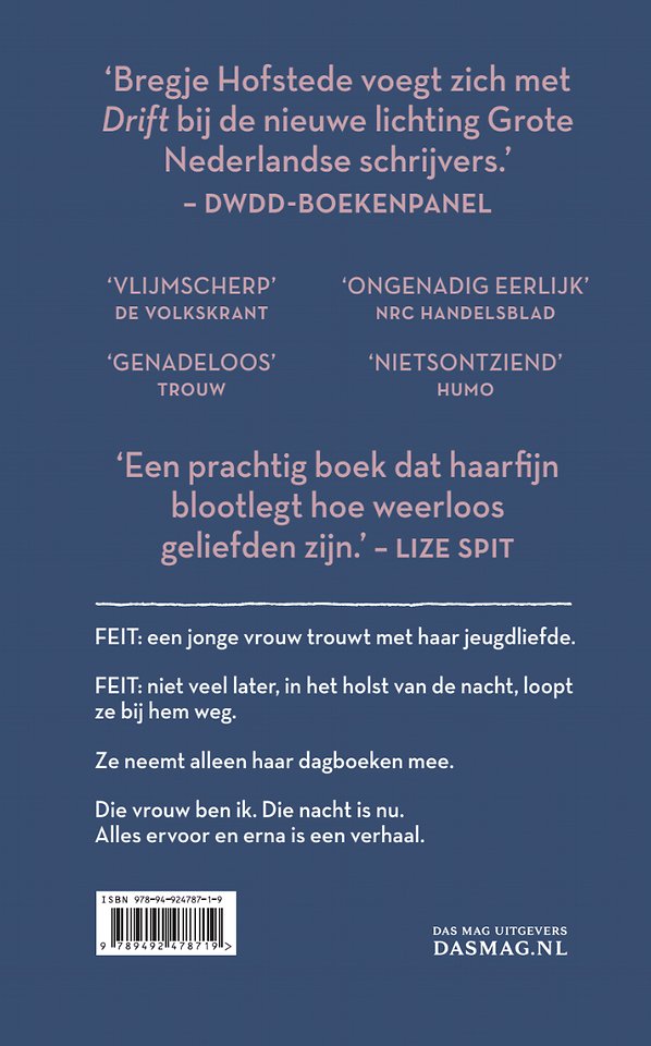 'Drift' is een onverbloemd verhaal over iemand die wegloopt van huis omdat ze jarenlang wegliep van zichzelf. Over hoe overweldigend een eerste liefde is, totdat die je benauwt. En hoe elk liefdesverhaal uiteindelijk draait om bedrog.