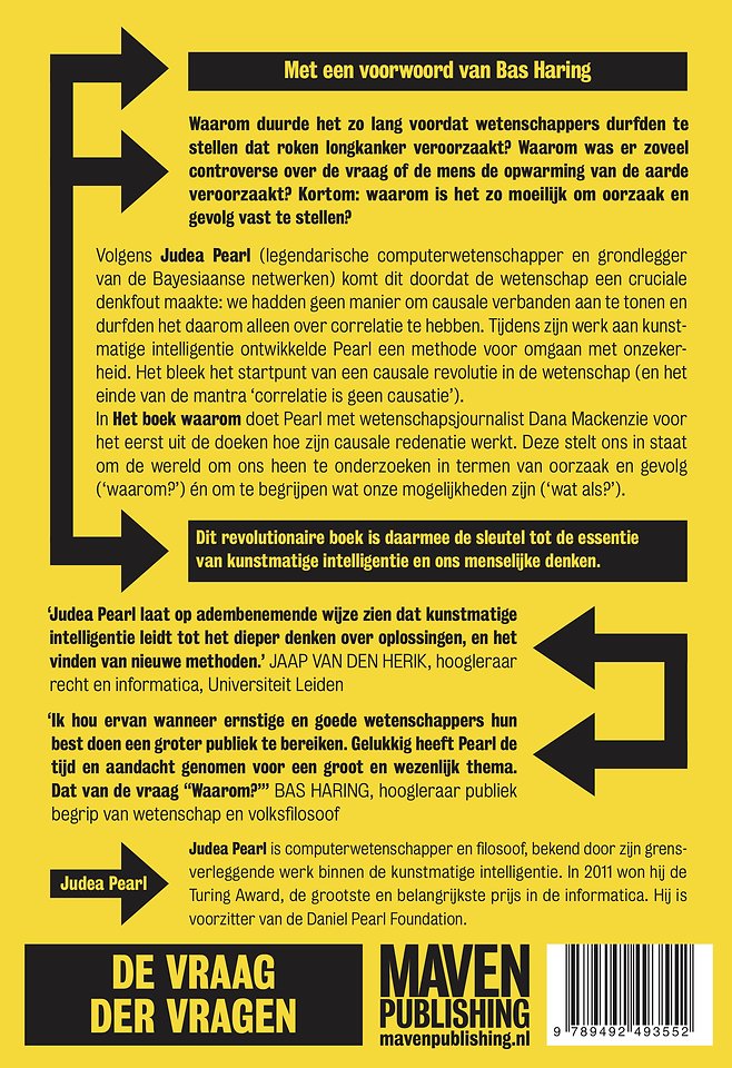In Het boek waarom doet Pearl met wetenschapsjournalist Dana Mackenzie voor het eerst uit de doeken hoe zijn causale redenatie werkt. Deze stelt ons in staat om de wereld om ons heen te onderzoeken in termen van oorzaak en gevolg (‘waarom?’) én om te begrijpen wat onze mogelijkheden zijn (‘wat als?’).