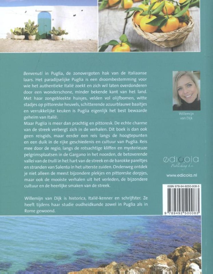 Maar Puglia is meer dan prachtig en pittoresk. De echte charme van de streek verbergt zich in de verhalen. Dit boek is dan ook geen reisgids, maar eerder een reis langs de hoogtepunten en een duik in de rijke geschiedenis en cultuur van Puglia. Reis mee door de regio, langs de rotsachtige kliffen en mysterieuze pelgrimsplaatsen in de Gargano in het noorden, de betoverende vallei van de trulli in het hart van de streek en de barokke pareltjes en stranden van Salento in het uiterste zuiden. Onderweg ontdek je niet alleen de meest bijzondere plekjes en pittoreske dorpjes, maar ook de mooiste verhalen uit het verleden, de bijzondere cultuur en de heerlijke smaken van de streek.