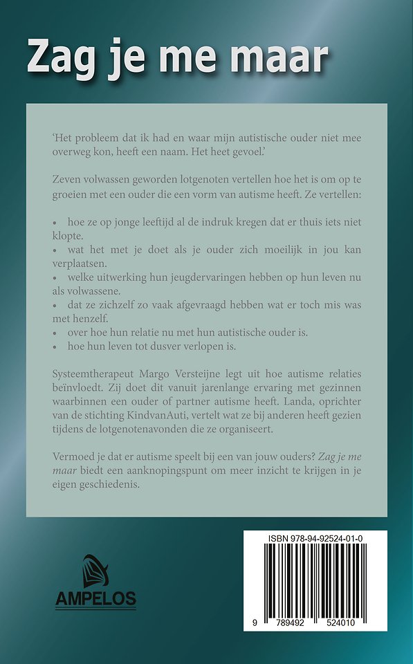 Vermoed je dat er autisme speelt bij een van jouw ouders? Zag je me maar biedt een aanknopingspunt om meer inzicht te krijgen in je eigen geschiedenis.