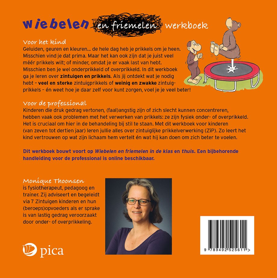Dit werkboek bouwt voort op Wiebelen en friemelen in de klas en thuis. Een bijbehorende handleiding voor de professional is online beschikbaar.