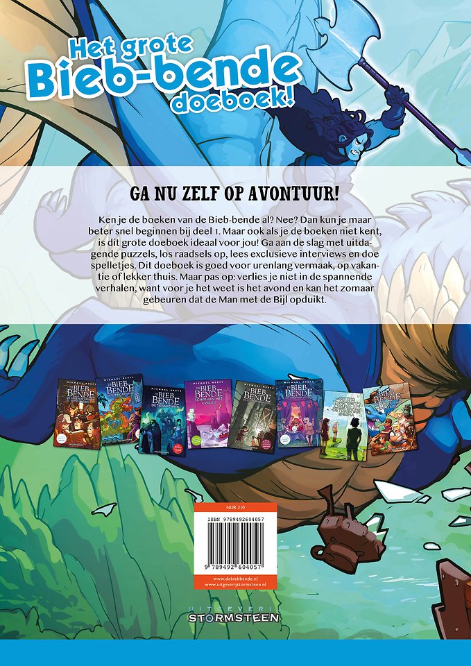 Ken je de boeken van de Bieb-bende al? Nee? Dan kun je maar beter snel beginnen bij deel 1. Maar ook als je de boeken niet kent, is dit grote doeboek ideaal voor jou! Ga aan de slag met uitdagende puzzels, los raadsels op, lees exclusieve interviews en doe spelletjes. Dit doeboek is goed voor urenlang vermaak, op vakantie of lekker thuis. Maar pas op: verlies je niet in de spannende verhalen, want voor je het weet is het avond en kan het zomaar gebeuren dat de Man met de Bijl opduikt.