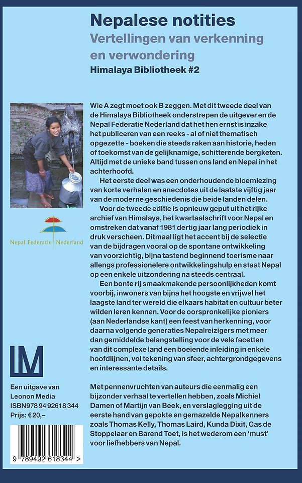 Wie A zegt moet ook B zeggen. Met dit tweede deel van de Himalaya Bibliotheek onderstrepen de uitgever en de Nepal Federatie Nederland dat het hen ernst is inzake het publiceren van een reeks - al of niet thematisch opgezette - boeken die steeds raken aan historie, heden of toekomst van de gelijknamige, schitterende bergketen. Altijd met de unieke band tussen ons land en Nepal in het achterhoofd.