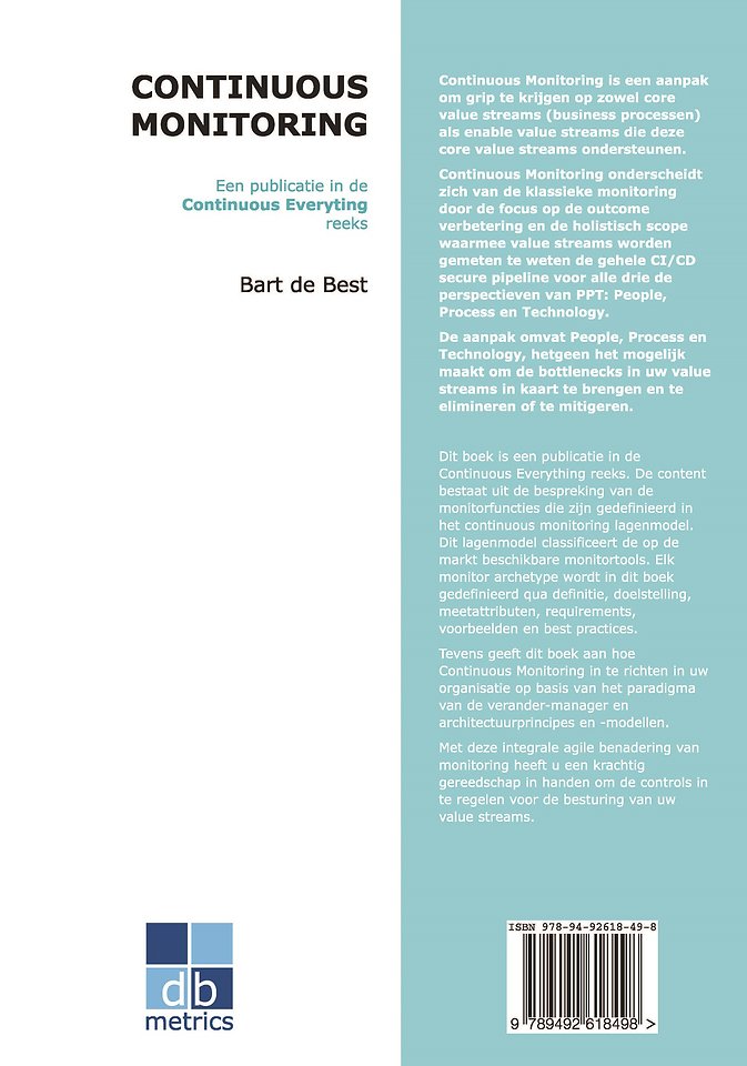 Dit boek is een publicatie in de Continuous Everything reeks. De content bestaat uit de bespreking van de monitorfuncties die zijn gedefinieerd in het continuous monitoring lagenmodel. Dit lagenmodel classificeert de op de markt beschikbare monitortools. Elk monitor archetype wordt in dit boek gedefinieerd qua definitie, doelstelling, meetattributen, requirements, voorbeelden en best practices.