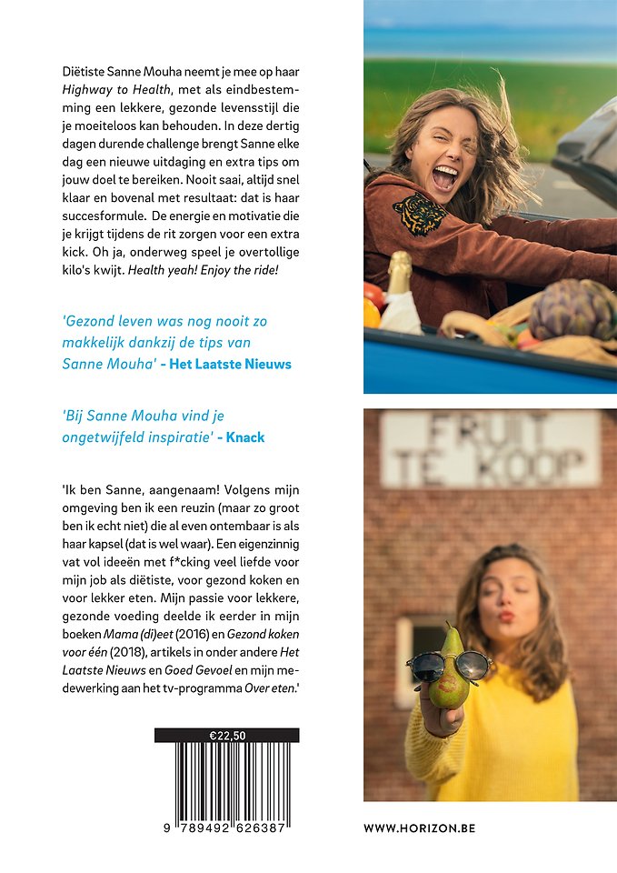 Diëtiste Sanne Mouha neemt je mee op haar Highway to Health, met als eindbestemming een lekkere, gezonde levensstijl die je moeiteloos kan behouden. In deze dertig dagen durende challenge brengt Sanne elke dag een nieuwe uitdaging en extra tips om jouw doel te bereiken. Nooit saai, altijd snel klaar en bovenal met resultaat: dat is haar succesformule. De energie en motivatie die je krijgt tijdens de rit zorgen voor een extra kick. Oh ja, onderweg speel je overtollige kilo's kwijt. Health yeah! Enjoy the ride!