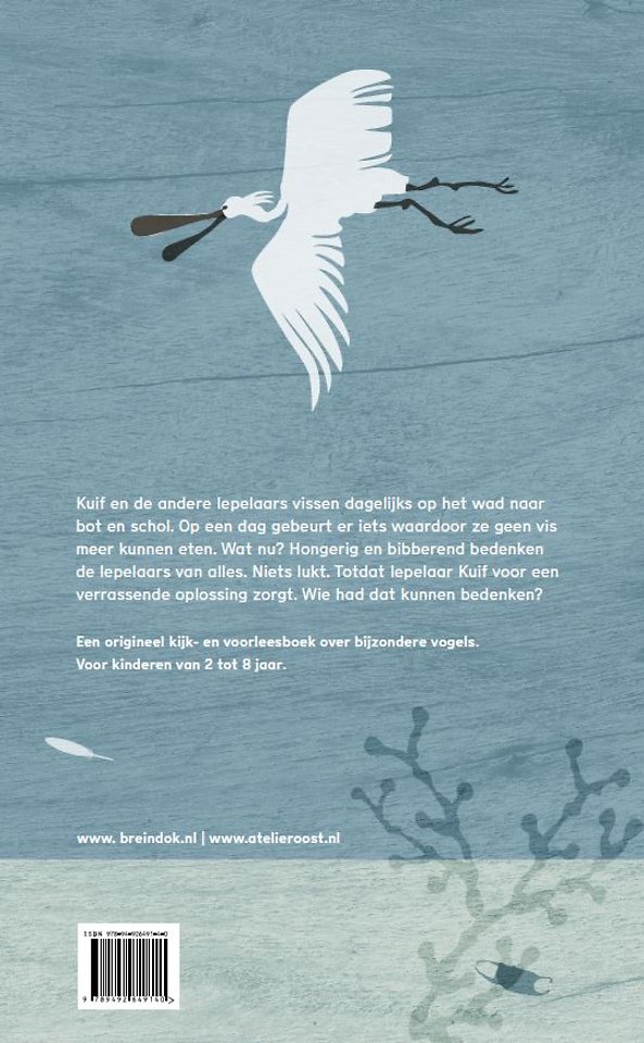 Kuif en de andere lepelaars vissen dagelijks op het wad naar bot en schol. Op een dag gebeurt er iets waardoor ze geen vis meer kunnen eten. Wat nu? Hongerig en bibberend bedenken de lepelaars van alles. Niets lukt. Totdat lepelaar Kuif voor een verrassende oplossing zorgt. Wie had dat kunnen bedenken?