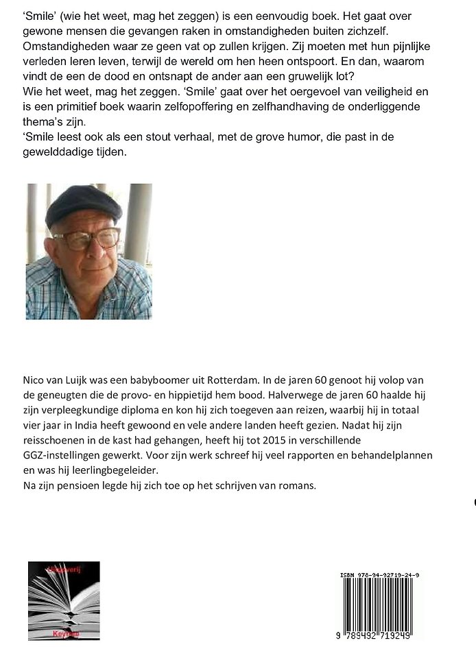 Nico van Luijk was een babyboomer uit Rotterdam. In de jaren 60 genoot hij volop van de geneugten die de provo- en hippietijd hem bood. Halverwege de jaren 60 haalde hij zijn verpleegkundige diploma en kon hij zich toegeven aan reizen, waarbij hij in totaal vier jaar in India heeft gewoond en vele andere landen heeft gezien. Nadat hij zijn reisschoenen in de kast had gehangen, heeft hij tot 2015 in verschillende GGZ-instellingen gewerkt. Voor zijn werk schreef hij veel rapporten en behandelplannen en was hij leerlingbegeleider.