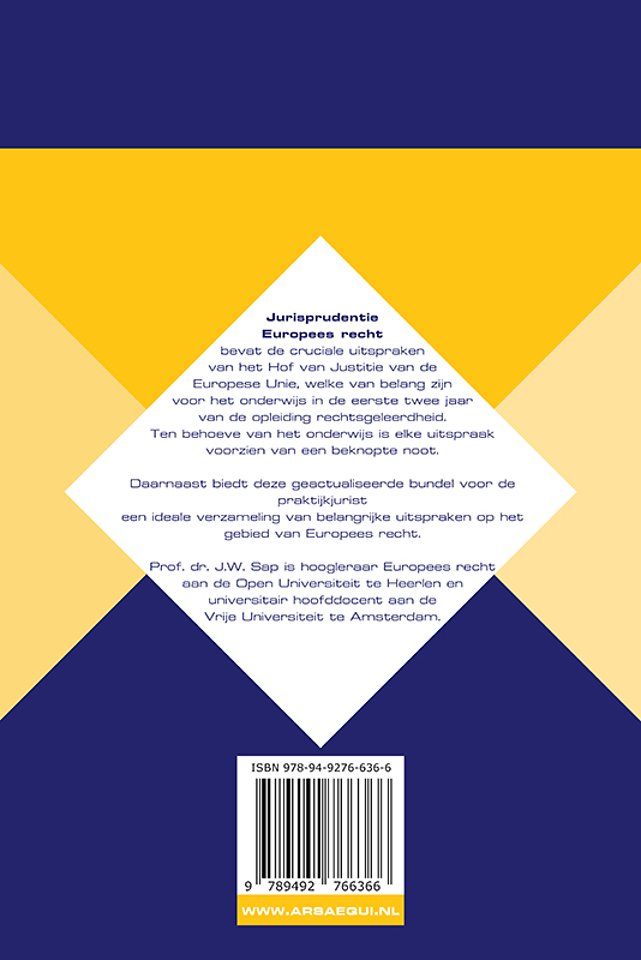 Jurisprudentie Europees recht bevat de cruciale uitspraken van het Hof van Justitie van de Europese Unie, welke van belang zijn voor het onderwijs in de eerste twee jaar van de opleiding rechtsgeleerdheid. Ten behoeve van het onderwijs is elke uitspraak voorzien van een beknopte noot.