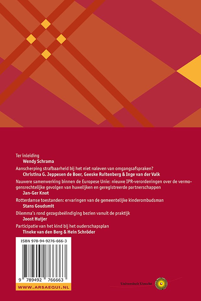 In de Ars Aequi UCERF-reeks worden de actuele ontwikkeling in het familierecht beschreven en geanalyseerd door de wetenschappers van het Utrecht Centre for European Research into Family Law (UCERF). Het centrum heeft zijn bestaansrecht in de afgelopen tien jaar bewezen: toonaangevend wetenschappelijk onderzoek, gepubliceerd in vooraanstaande tijdschriften en bundels, succesvolle verwerving en uitvoering van omvangrijk 3e geldstroomonderzoek en internationale onderscheidingen en prijzen.