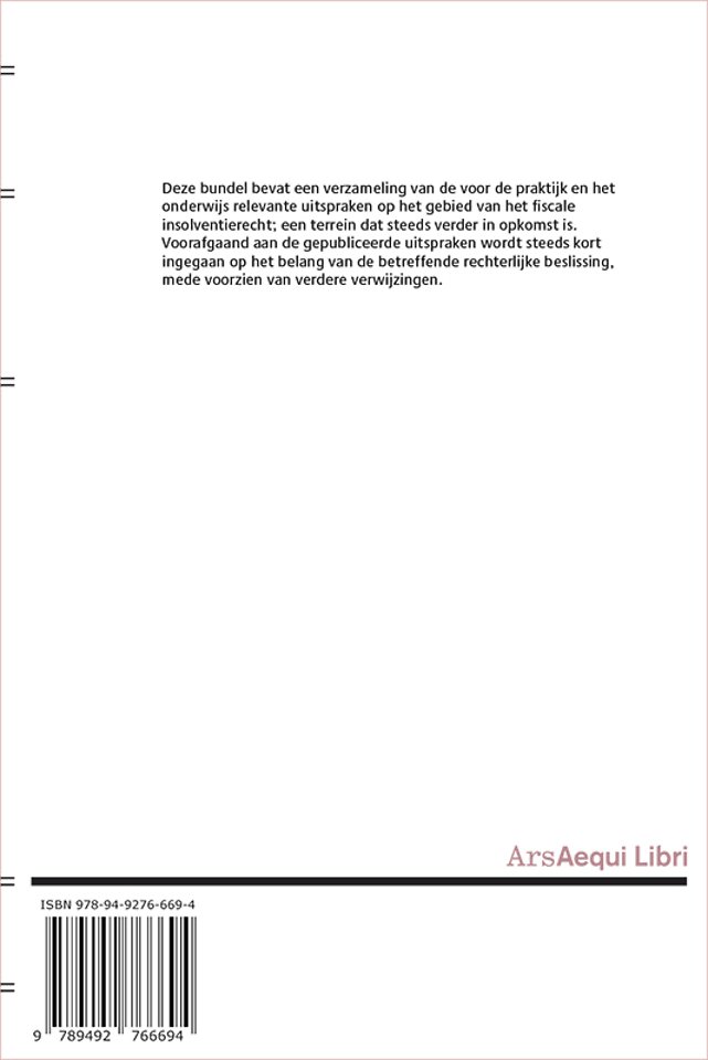 Deze bundel bevat een verzameling van de voor de praktijk en het onderwijs relevante uitspraken op het gebied van het fiscale insolventierecht; een terrein dat steeds verder in opkomst is.