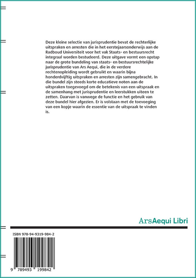 Deze uitgave vormt een opstap naar de grote bundeling van staats- en bestuursrechtelijke jurisprudentie van Ars Aequi, die in de verdere rechtenopleiding wordt gebruikt en waarin bijna honderdvijftig uitspraken en arresten zijn samengebracht.
