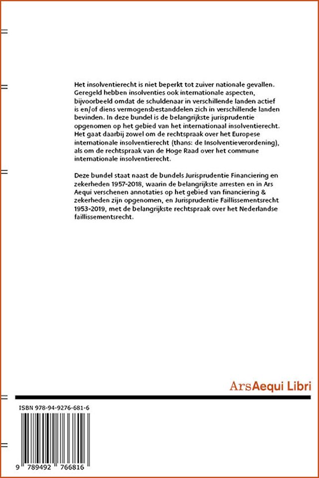 In deze bundel is de belangrijkste jurisprudentie opgenomen op het gebied van het internationaal insolventierecht. Het gaat daarbij zowel om de rechtspraak over het Europese internationale insolventierecht (thans: de Insolventieverordening), als om de rechtspraak van de Hoge Raad over het commune internationale insolventierecht.