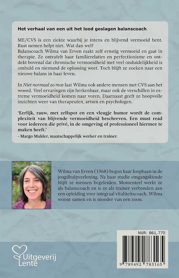 Niet normaal zo moe is onthullend, inspirerend, informatief en belangwekkend. Voor iedereen die te maken heeft met mensen die langdurig moe zijn. Als je zelf al lange tijd extreem vermoeid bent, geeft Wilma’s persoonlijke verhaal jou ideeën die je verder helpen in je zoektocht.