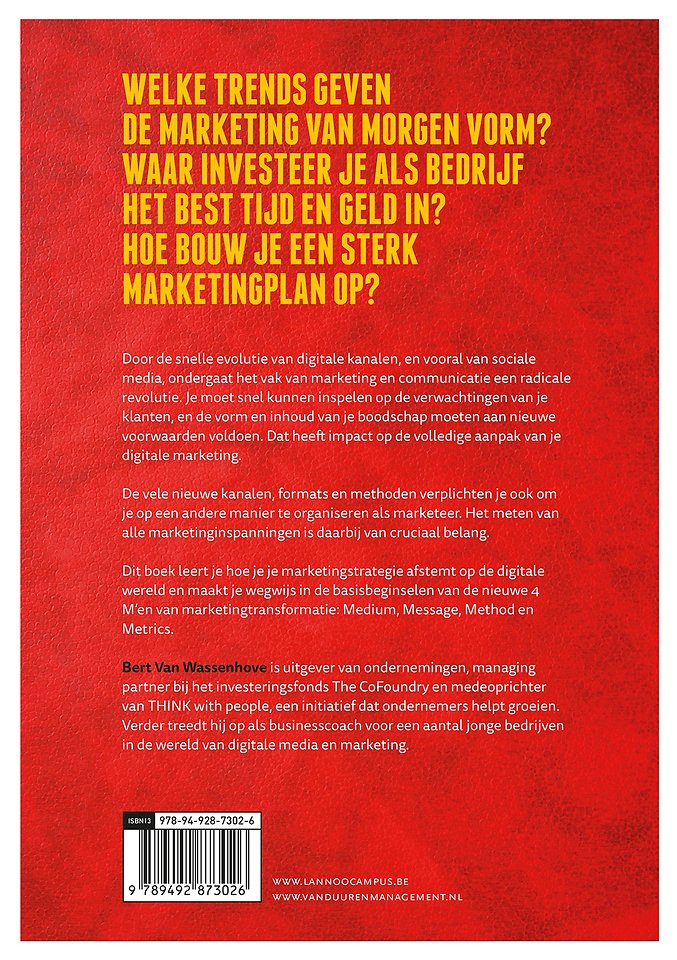 Dit boek leert je hoe je je marketingstrategie afstemt op de digitale wereld en maakt je wegwijs in de basisbeginselen van de nieuwe 4 M'en van marketingtransformatie: Medium, Message, Method en Metrics.
