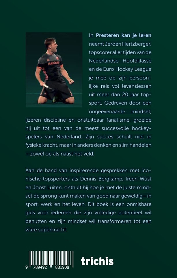 In Presteren kan je leren neemt Jeroen Hertzberger, topscorer aller tijden van de Nederlandse Hoofdklasse en de Euro Hockey League, je mee op zijn persoonlijke reis vol levenslessen uit 22 jaar topsport. Gedreven door een ongeëvenaarde mindset, ijzeren discipline en onstuitbaar fanatisme, groeide hij uit tot een van de meest succesvolle hockeyspelers van Nederland. Zijn succes schuilt niet in fysieke kracht, maar in anders denken en slim handelen—zowel op als naast het veld.