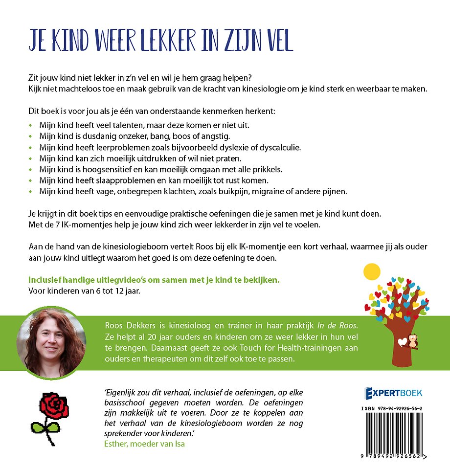 ‘Dit is niet zomaar een boek, nee een boek waar heel veel kinderen en ouders blij mee zullen zijn. In Roos-stijl gemaakt. Een vrolijke uitstraling, lekker overzichtelijk door de vormgeving. Er staat een duidelijke uitleg in met voorbeelden voor wie dit boek bestemd is. Roos straalt in dit boek LIEFDE uit voor haar vak en de effecten die de kinesiologie heeft op kinderen en hun ouders, terwijl ze zichzelf ook kwetsbaar opstelt in de inleiding.