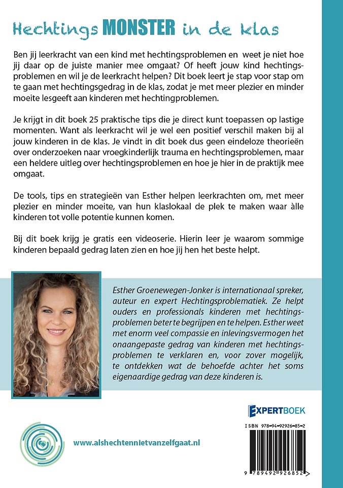 De tools, tips en strategieën van Esther helpen leerkrachten om, met meer plezier en minder moeite, van hun klaslokaal de plek te maken waar àlle kinderen tot volle potentie kunnen komen.