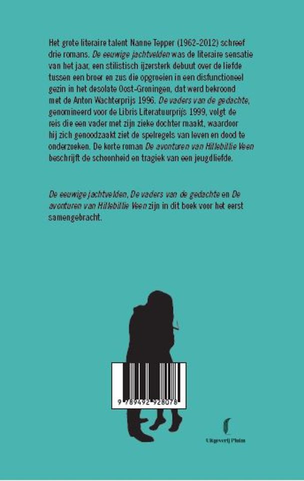 Het grote literaire talent Nanne Tepper (1962-2012) schreef drie romans. 'De eeuwige jachtvelden' was de literaire sensatie van het jaar, een stilistisch ijzersterk debuut over de liefde tussen een broer en zus die opgroeien in een disfunctioneel gezin in het desolate Oost-Groningen, dat werd bekroond met de Anton Wachterprijs 1996. 'De vaders van de gedachte', genomineerd voor de Libris Literatuurprijs 1999, volgt de reis die een vader met zijn zieke dochter maakt, waardoor hij zich genoodzaakt ziet de spelregels van leven en dood te onderzoeken. De korte roman 'De avonturen van Hillebillie Veen' beschrijft de schoonheid en tragiek van een jeugdliefde.