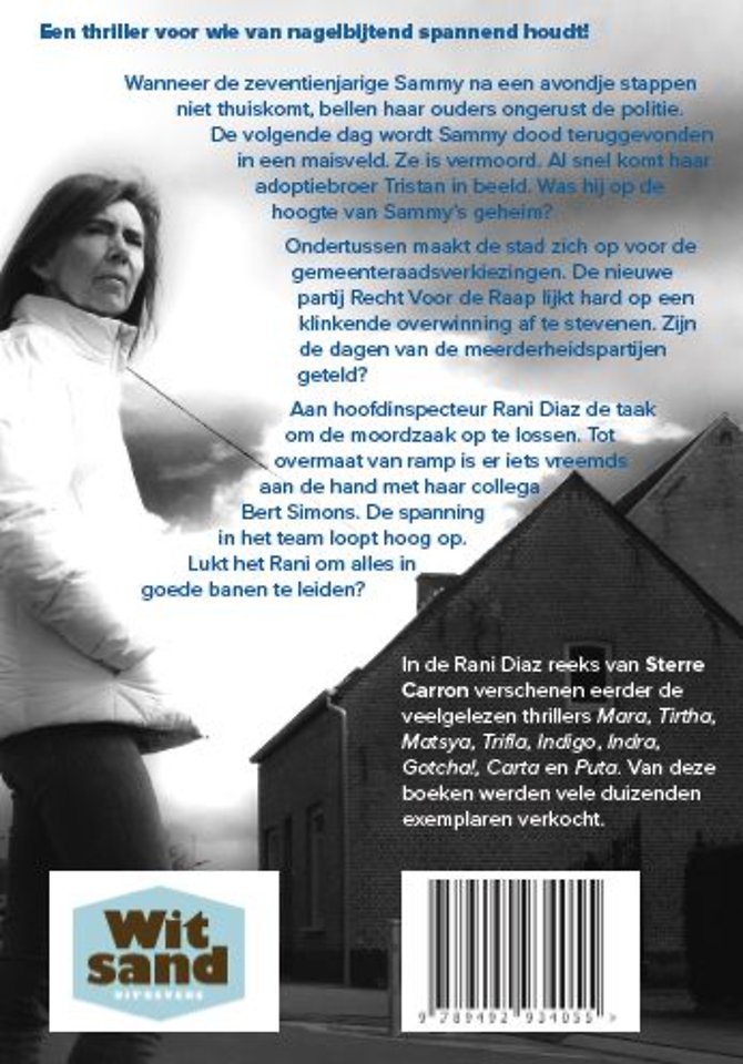 In de Rani Diaz reeks van Sterre Carron verschenen eerder de veelgelezen thrillers Mara, Tirtha, Matsya, Trifla, Indigo, Indra, Gotcha!, Carta en Puta. Van deze boeken werden vele duizenden exemplaren verkocht.