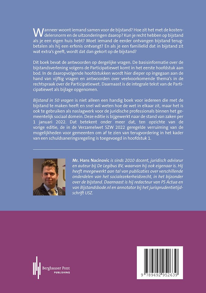 'Bijstand in 50 vragen' is daarmee niet alleen een handig boek voor iedereen die met de bijstand te maken heeft en snel wil weten hoe de wet in elkaar zit, maar het is ook te gebruiken als naslagwerk voor de juridische professionals binnen het gemeentelijk sociale domein.