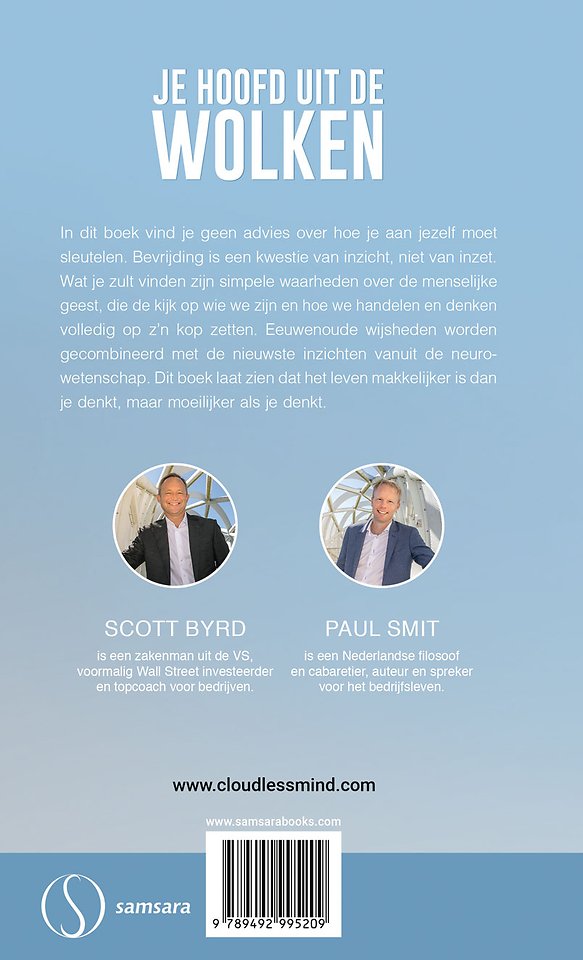 In de zomer van 2018 zijn wij (Paul & Scott) begonnen met het schrijven van dit boekje, waarin we de nonduale zienswijze belichten en deze koppelen aan leiderschap en processen binnen het bedrijfsleven. In onze optiek is de meest belemmerende factor binnen het bedrijfsleven, dat mensen vol ruis zitten in hun hoofd. Gepieker, frustratie, angst, stress en compensatiegedrag maken dat samenwerking, innovatie en vertrouwen moeilijk worden. Daarom kijken we naar hoe je met je hoofd uit de wolken kunt komen en veel moeitelozer in het leven kunt staan. Het leven is namelijk makkelijker dan je denkt, maar moeilijker als je denkt. Om het leven makkelijker te maken, worden geslachtsbepalende persoonlijke voornaamwoorden in dit boek willekeurig gebruikt: ‘hij’, ‘zij’ en ‘het’ zijn volledig inwisselbaar. Dat is niet zo in het echte leven, maar wel in dit boek.