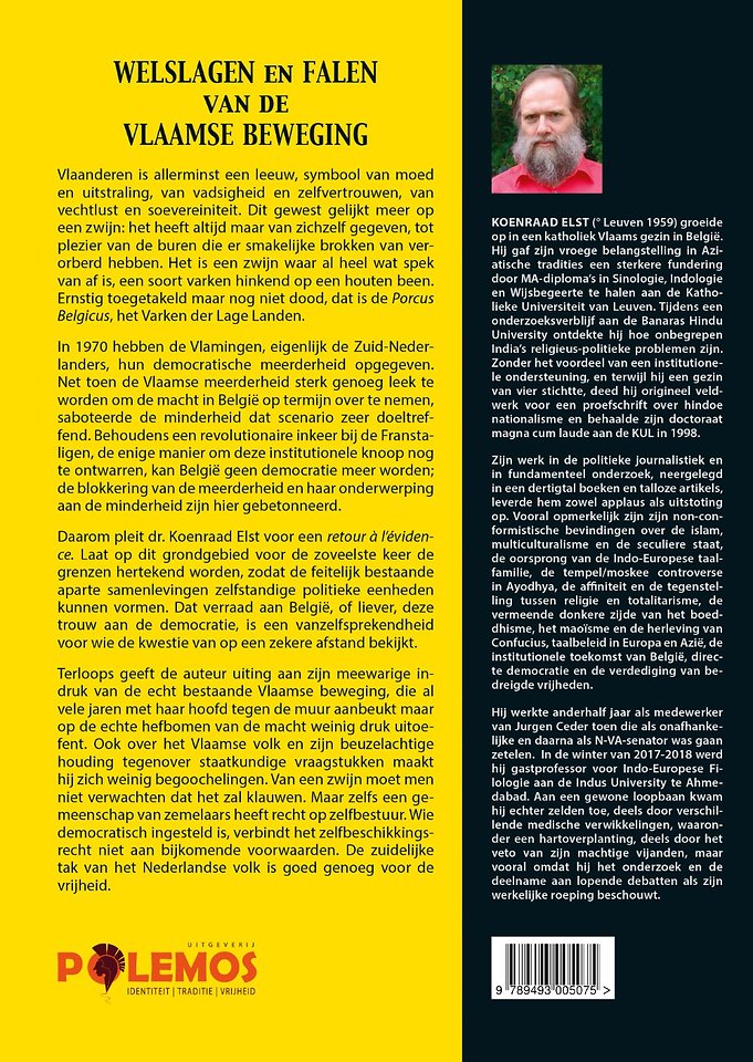 Daarom pleit dr. Koenraad Elst voor een retour à l’évi- dence. Laat op dit grondgebied voor de zoveelste keer de grenzen hertekend worden, zodat de feitelijk be- staande aparte samenlevingen zelfstandige politieke eenheden kunnen vormen. Dat verraad aan België, of liever, deze trouw aan de democratie, is een vanzelf- sprekendheid voor wie de kwestie van op een zekere afstand bekijkt.