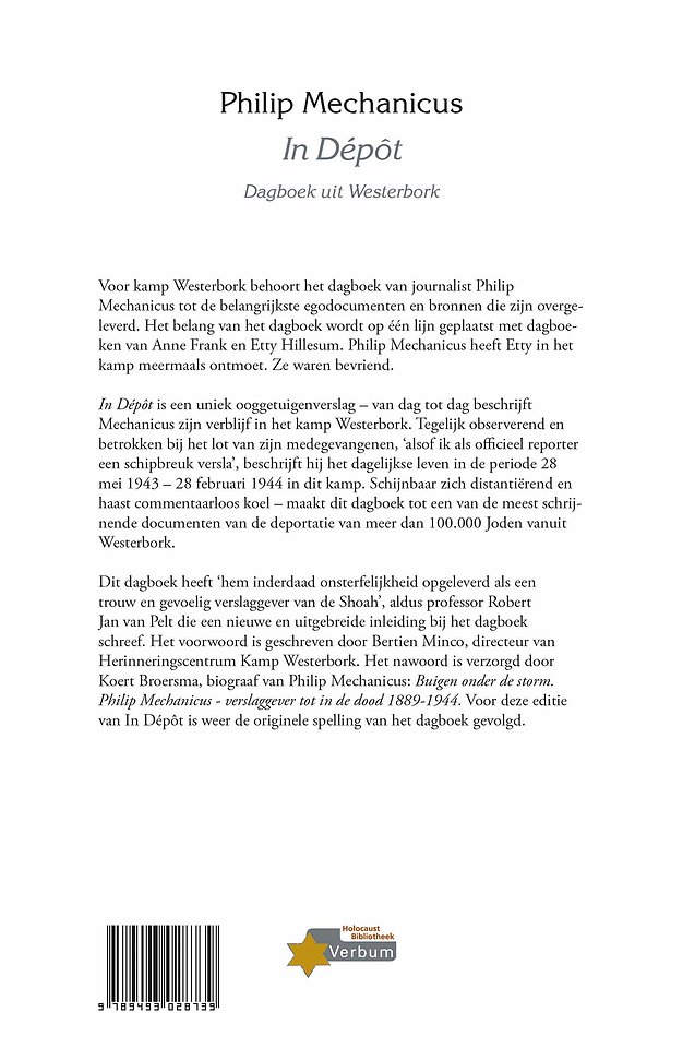 Dit dagboek heeft ‘hem inderdaad onsterfelijkheid opgeleverd als een trouw en gevoelig verslaggever van de Shoah’, aldus professor Robert Jan van Pelt die een nieuwe en uitgebreide inleiding bij het dagboek schreef. Het voorwoord is geschreven door Bertien Minco, directeur van Herinneringscentrum Kamp Westerbork. Het nawoord is verzorgd door Koert Broersma, biograaf van Philip Mechanicus: Buigen onder de storm. Philip Mechanicus - verslaggever tot in de dood 1889-1944. Voor deze editie van In Dépôt is weer de originele spelling van het dagboek gevolgd.