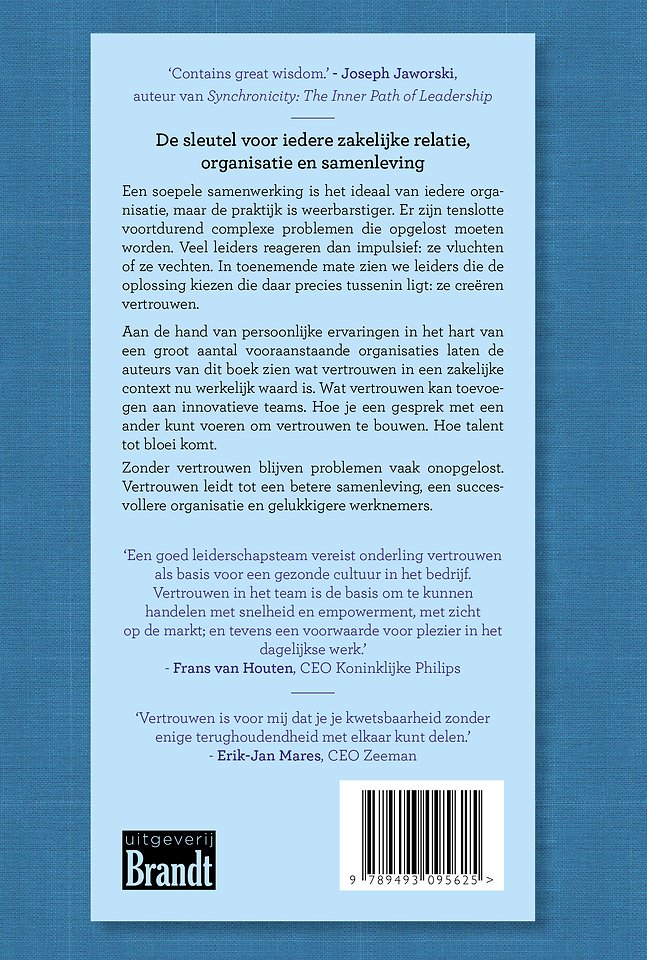 Aan de hand van persoonlijke ervaringen in het hart van een groot aantal vooraanstaande organisaties laten de auteurs van dit boek zien wat vertrouwen in een zakelijke context nu werkelijk waard is. Wat vertrouwen kan toevoegen aan innovatieve teams. Hoe je een gesprek met een ander kunt voeren om vertrouwen te bouwen. Hoe talent tot bloei komt.
