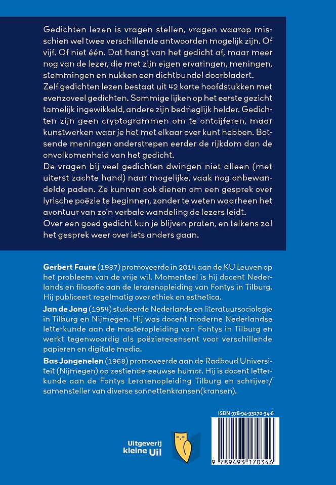 Gedichten lezen is vragen stellen, vragen waarop misschien wel twee verschillende antwoorden mogelijk zijn. Of vijf. Of niet één. Dat hangt van het gedicht af, maar meer nog van de lezer, die met zijn eigen ervaringen, meningen, stemmingen en nukken een dichtbundel doorbladert.