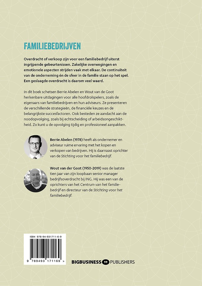 In dit boek schetsen Berrie Abelen en Wout van der Goot herkenbare uitdagingen voor alle hoofdrolspelers, zoals de eigenaars van familiebedrijven en hun adviseurs. Ze presenteren de verschillende strategieën, de financiële keuzes en de belangrijkste succesfactoren. Ook besteden ze aandacht aan de noodopvolging, zoals bij echtscheiding of arbeidsongeschiktheid. Zo kunt u de opvolging tijdig en professioneel aanpakken.