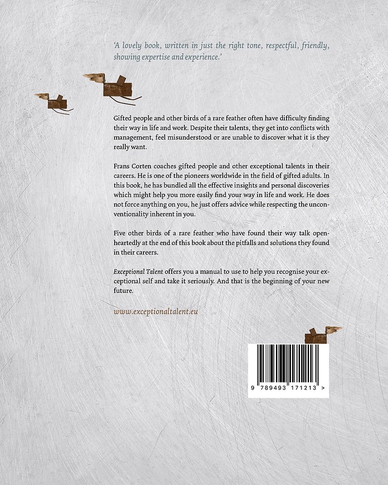 Frans Corten coaches gifted people and other exceptional talents in their careers. He is one of the pioneers worldwide in the fi eld of gifted adults. In this book, he has bundled all the effective insights and personal discoveries which might help you more easily fi nd your way in life and work. He doesn’t force anything on you, he just offers advice while respecting the unconventionality inherent in you.