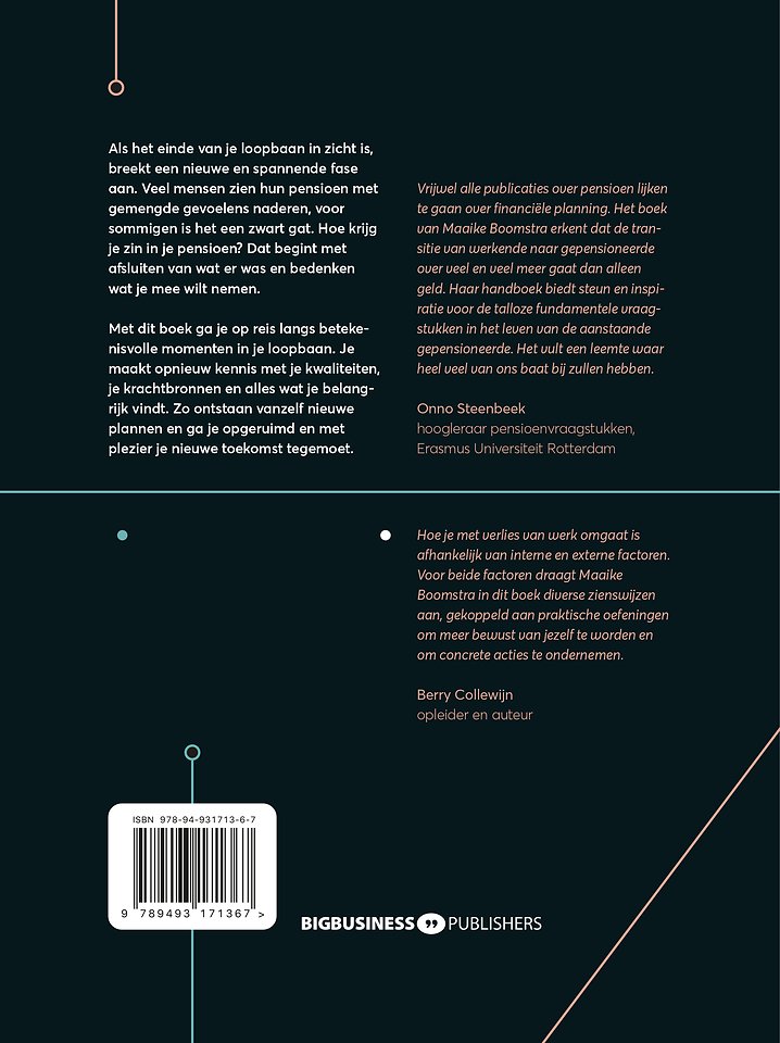 pensioen loopbaan persoonlijke ontwikkeling zingeving levensovergang afscheid nemen zelfonderzoek toekomst identiteit levensfasen waarden rouwproces krachtbronnen kwaliteit levensverhaal netwerken emoties drijfveren personeelsmanagement reflectie regie verlieservaringen coaching werkidentiteit biografische lijnen betekenisgeving