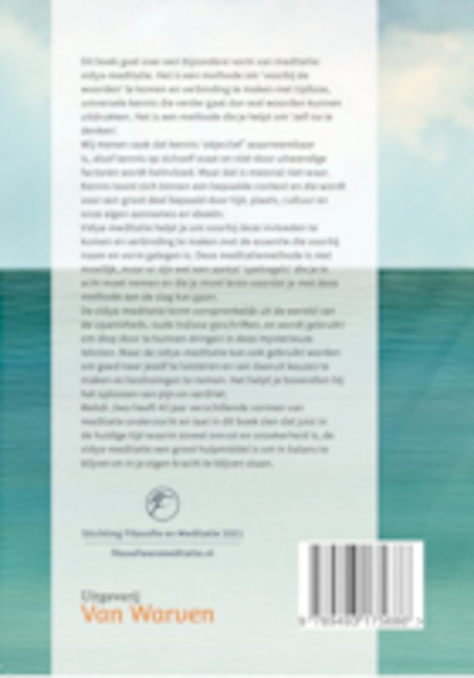 Dit boek gaat over een bijzondere vorm van meditatie: vidya-meditatie. Het is een methode om ‘voorbij de woorden’ te komen en verbinding te maken met tijdloze, universele kennis die verder gaat dan wat woorden kunnen uitdrukken. Het is een methode die je helpt om ‘zelf na te denken’.