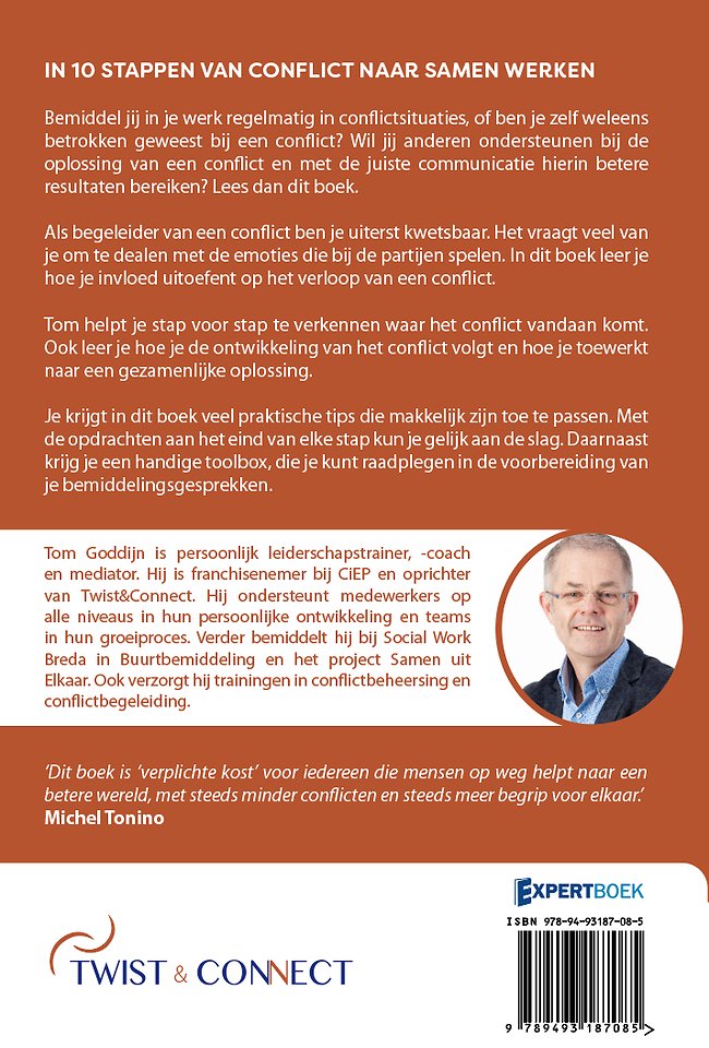 Tom helpt je stap voor stap te verkennen waar het conflict vandaan komt. Ook leer je hoe je de ontwikkeling van het conflict volgt en hoe je toewerkt naar een gezamenlijke oplossing.