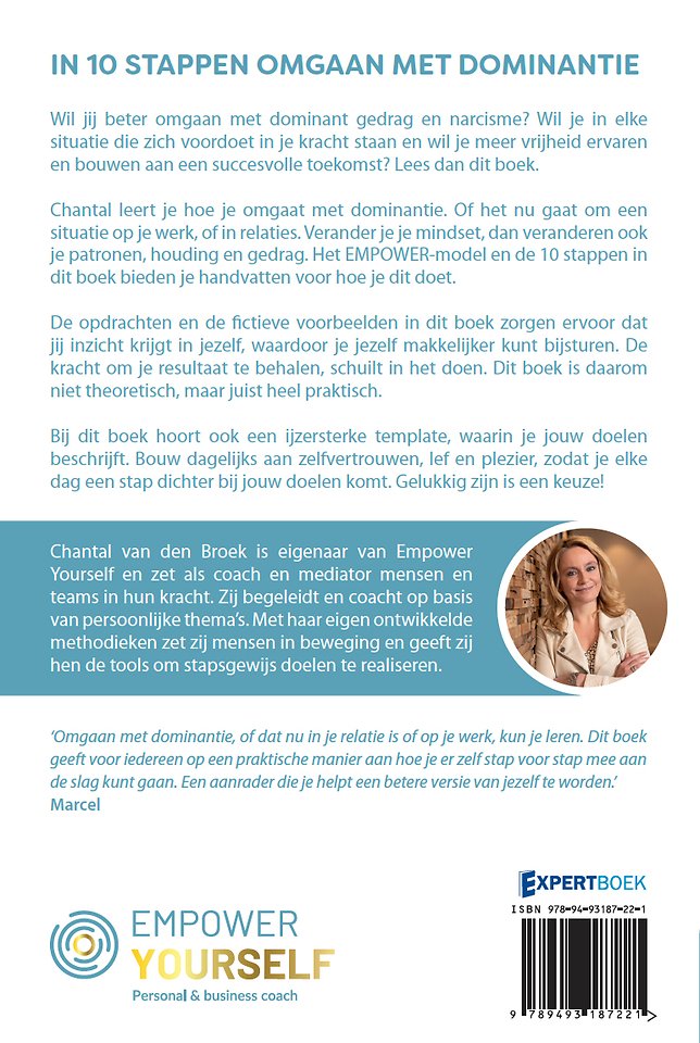 Chantal leert je hoe je omgaat met dominantie. Of het nu gaat om een situatie op je werk, of in relaties. Verander je je mindset, dan veranderen ook je patronen, houding en gedrag. Het EMPOWER-model en de 10 stappen in dit boek bieden je handvatten voor hoe je dit doet.
