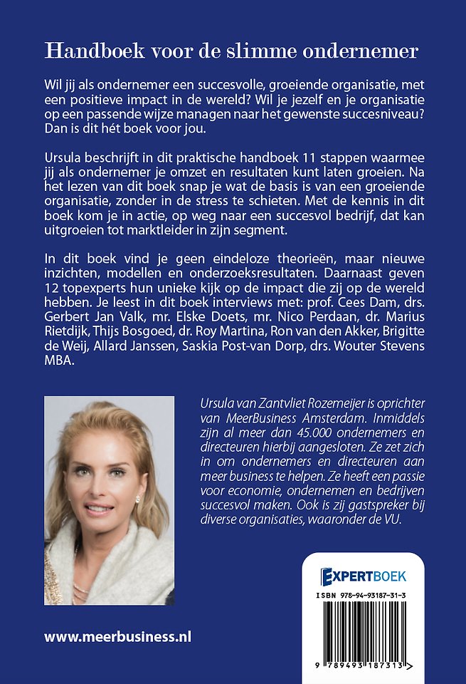 Ursula van Zantvliet Rozemeijer is oprichter van MeerBusiness Amsterdam. Inmiddels zijn al meer dan 45.000 ondernemers en directeuren hierbij aangesloten. Ze zet zich in om ondernemers en directeuren aan meer business te helpen. Ze heeft een passie voor economie, ondernemen en bedrijven succesvol maken. Ook is zij gastspreker bij diverse organisaties, waaronder de VU