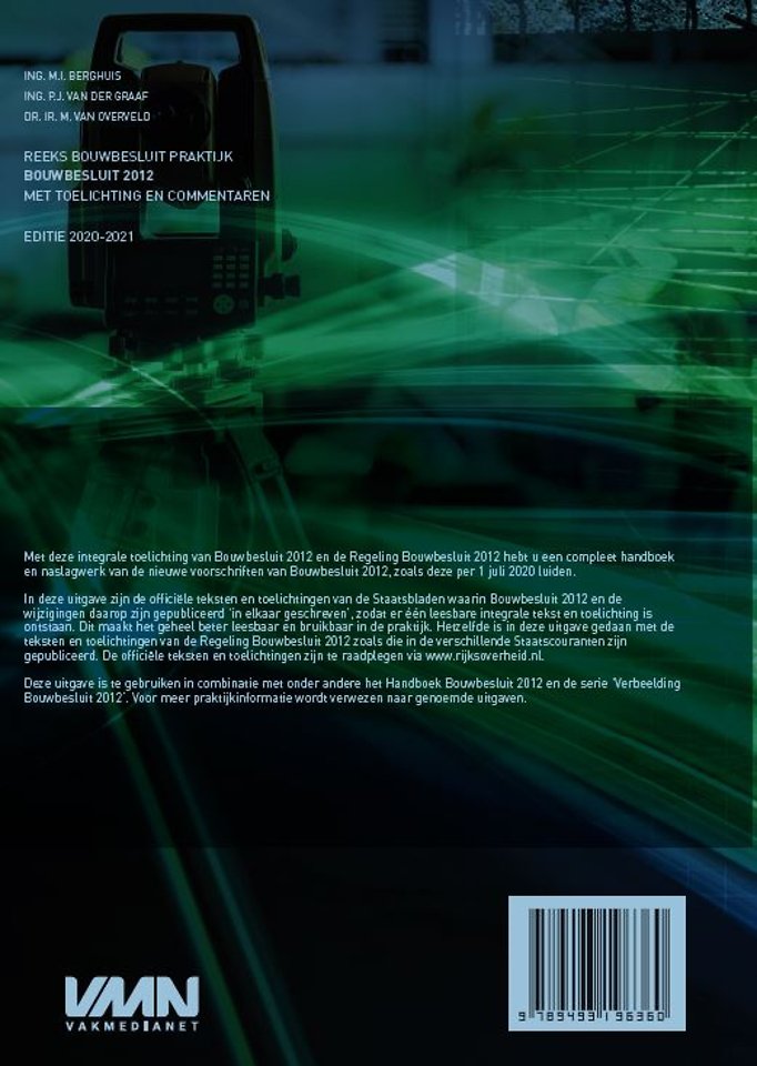 Met deze integrale toelichting van Bouwbesluit 2012 en de Regeling Bouwbesluit 2012 hebt u een compleet handboek en naslagwerk van de nieuwe voorschriften van Bouwbesluit 2012, zoals deze per 1 juli 2020 luiden.