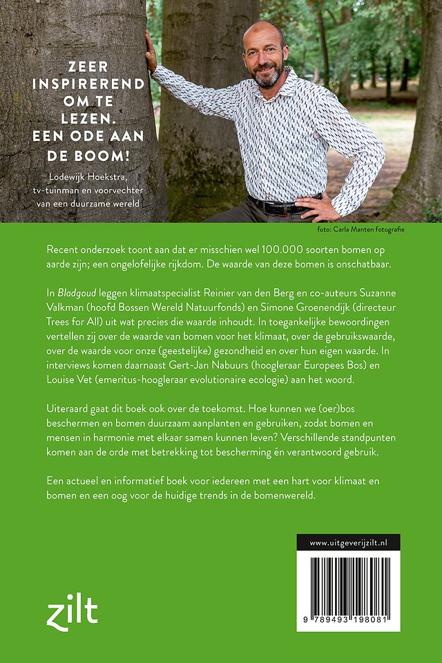 In Bladgoud leggen klimaatspecialist Reinier van den Berg en co-auteurs Suzanne Valkman en Simone Groenendijk uit wat precies die waarde inhoudt. In toegankelijke bewoordingen vertelt dit boek over de historie van bomen, over de waarde van bomen voor het klimaat, over biodiversiteit, over de gebruikswaarde, over de waarde voor onze (geestelijke) gezondheid en over hun eigen waarde.