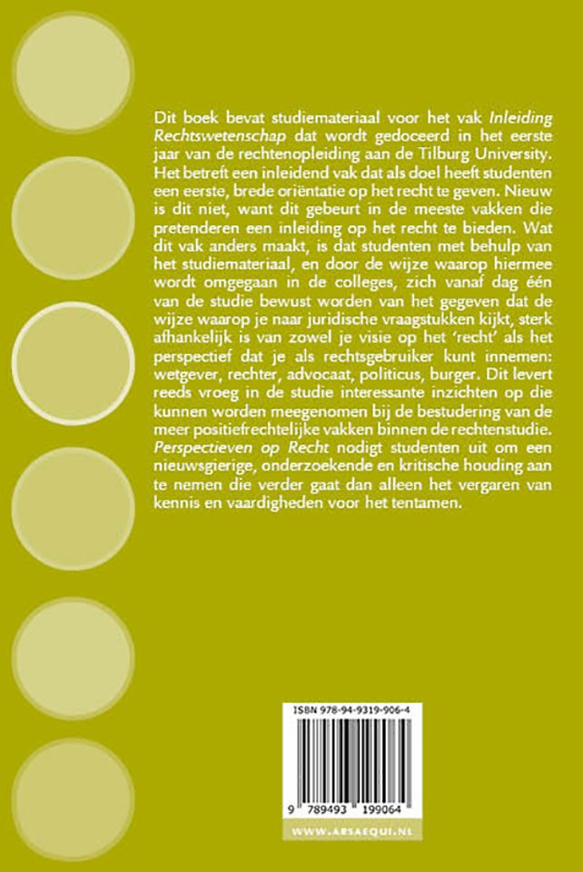 Dit boek bevat studiemateriaal voor het vak Inleiding Rechtswetenschap dat wordt gedoceerd in het eerste jaar van de rechtenopleiding aan de Tilburg University. Het betreft een inleidend vak dat als doel heeft studenten een eerste, brede oriëntatie op het recht te geven.