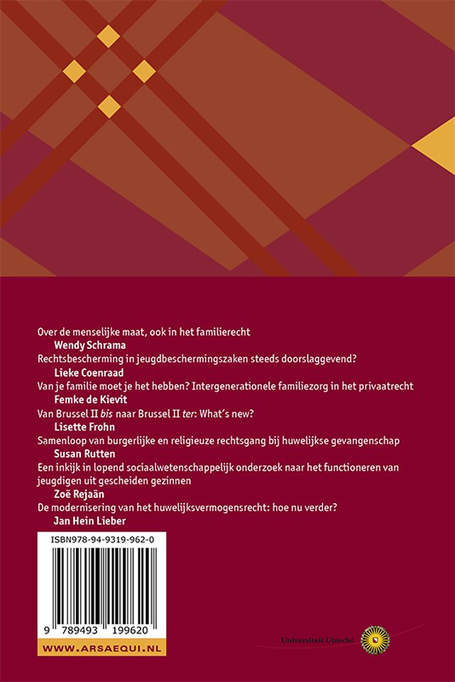 In de Ars Aequi UCERF-reeks worden de actuele ontwikkeling in het familierecht beschreven en geanalyseerd door de wetenschappers van het Utrecht Centre for European Research into Family Law (UCERF). Het centrum heeft zijn bestaansrecht in de afgelopen tien jaar bewezen: toonaangevend wetenschappelijk onderzoek, gepubliceerd in vooraanstaande tijdschriften en bundels, succesvolle verwerving en uitvoering van omvangrijk 3e geldstroomonderzoek en internationale onderscheidingen en prijzen.