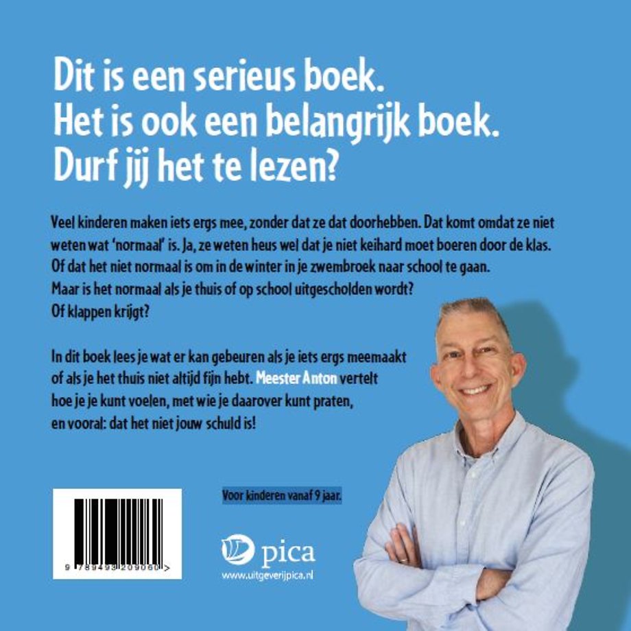 In dit boek lees je wat er kan gebeuren als je iets ergs meemaakt of als je het thuis niet altijd fijn hebt. Meester Anton vertelt hoe je je kunt voelen, met wie je daarover kunt praten, en vooral: dat het niet jouw schuld is!