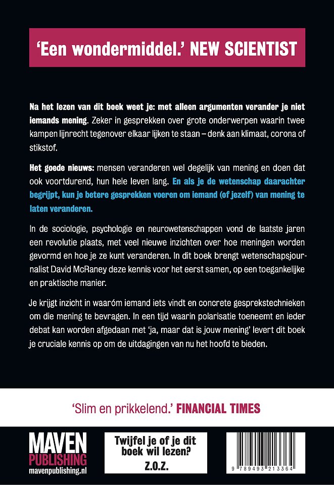 Meer over David McRaneyLeer betere gesprekken voeren (over moeilijke onderwerpen) met 'Hoe verander je een mening?' van David McRaney.