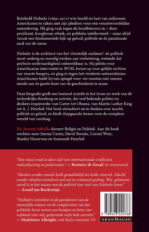 Dit toegankelijke boek geeft een boeiend inzicht in het leven en werk van de predikant en hoogleraar, én in het Amerika van de twintigste eeuw. Zijn bekendheid heeft hij vooral te danken aan zijn activisme en zijn vele geschriften over de relatie tussen geloof, politiek en de menselijke natuur. Het boek stimuleert al lezende om na te denken over geloof, macht en politiek; over eigenbelang, groepsbelang en algemeen belang; én om inzicht te krijgen in de geschiedenis.