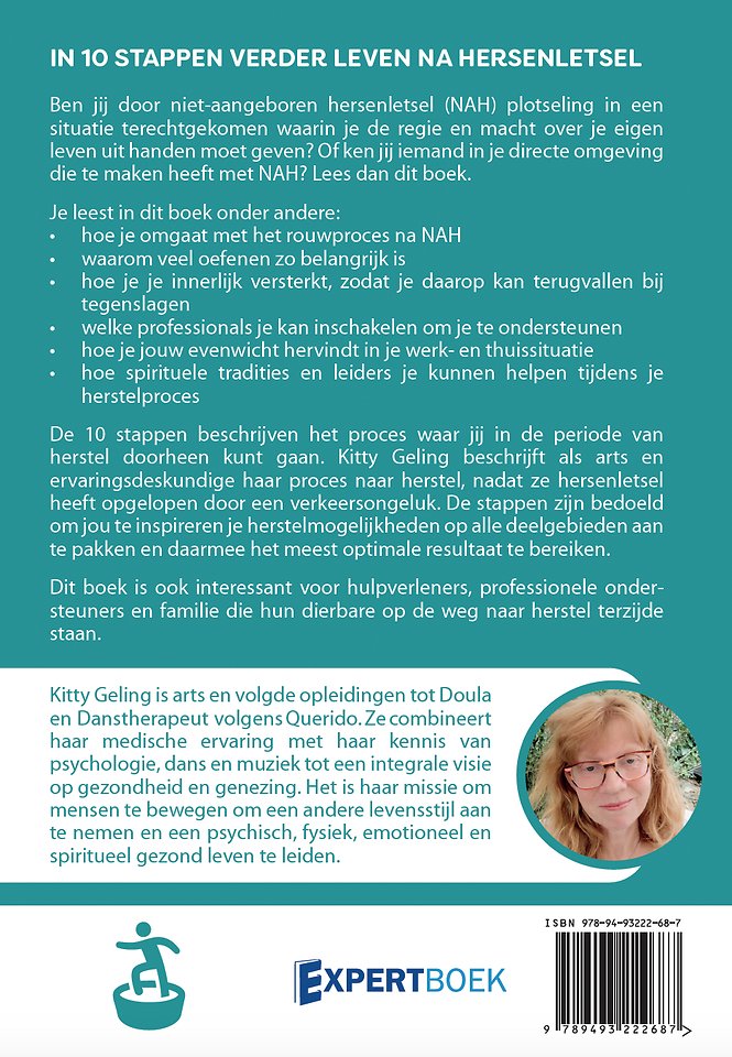 De 10 stappen beschrijven het proces waar jij in de periode van herstel doorheen kunt gaan. Kitty Geling beschrijft als arts en ervaringsdeskundige haar proces naar herstel, nadat ze hersenletsel heeft opgelopen door een verkeersongeluk. De stappen zijn bedoeld om jou te inspireren je herstelmogelijkheden op alle deelgebieden aan te pakken en daarmee het meest optimale resultaat te bereiken.